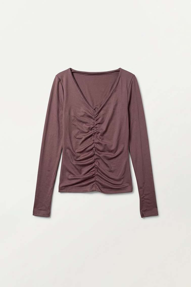 Descripcion: Remera manga larga escote V con frunce delantero . Delantero y espalda con tela doble hasta la cintura.