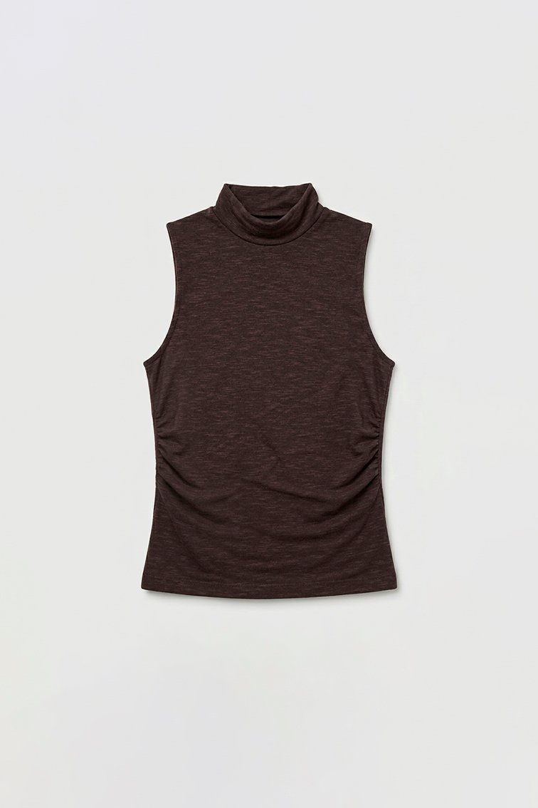 Descripcion: Musculosa semipolera con frunce lateral en delantero. Terminacion de mangas con envivado pisado.