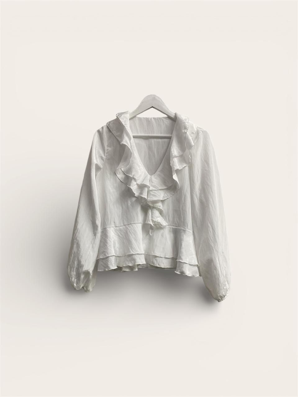 blusa escote v con volados (sedita queen)