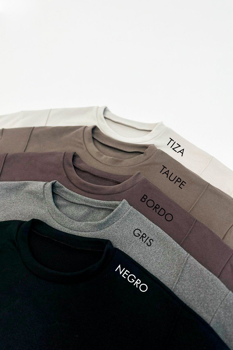 Descripcion: Buzo con alforzas delanteras con leve corte murcielago. Terminacion de puño en cintura, cuello y puños. La tela es elastizada permitiendo comodidad y que se adapte a diferentes cuerpos.
