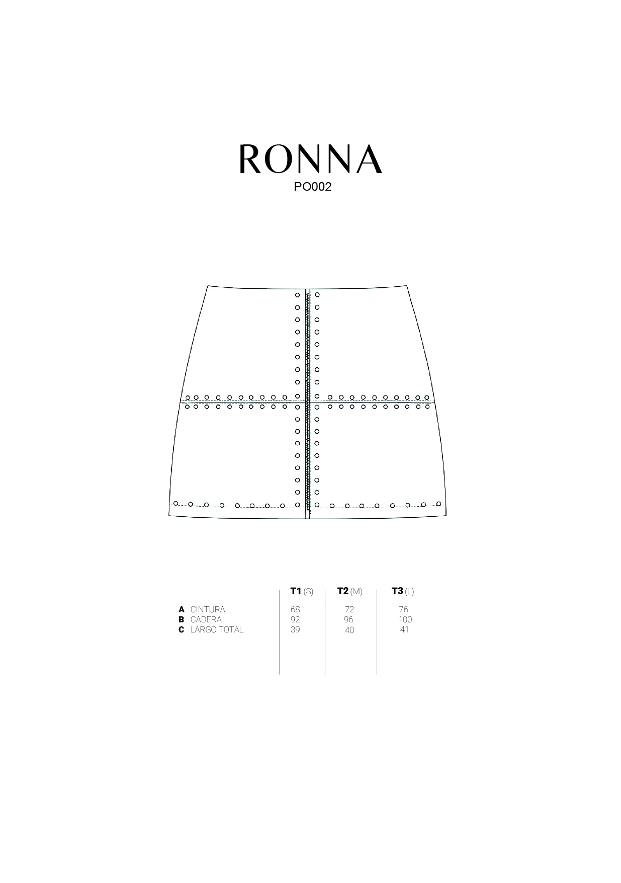 | Talle | TALLE 1, TALLE 2, TALLE 3 |