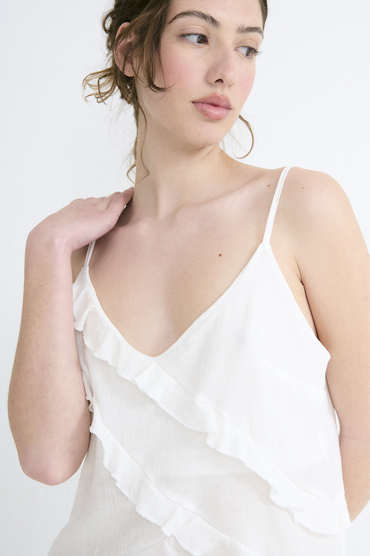 TOP UN HOMBRO DRAPEADO Y RUEDO EN PICO