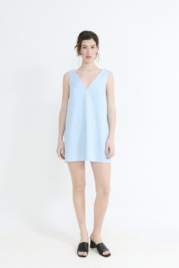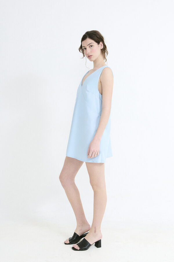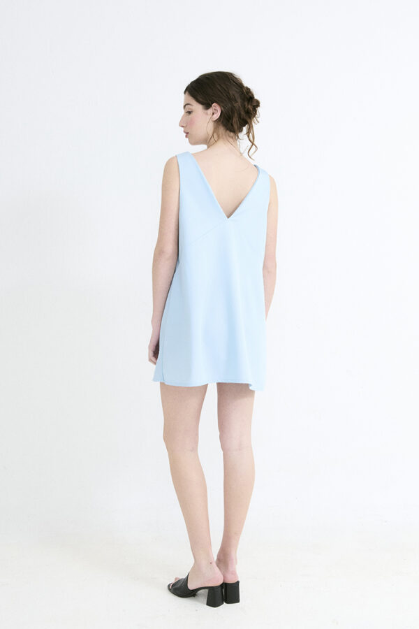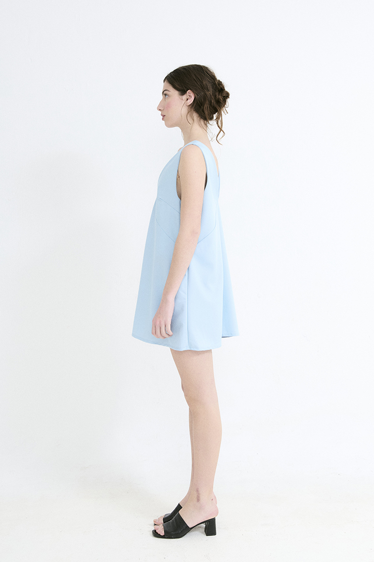VESTIDO ESCOTE CERRADO CON HOMBRERAS CON DRAPEADO (DOBLE TELA ADELANTE Y ATRAS)