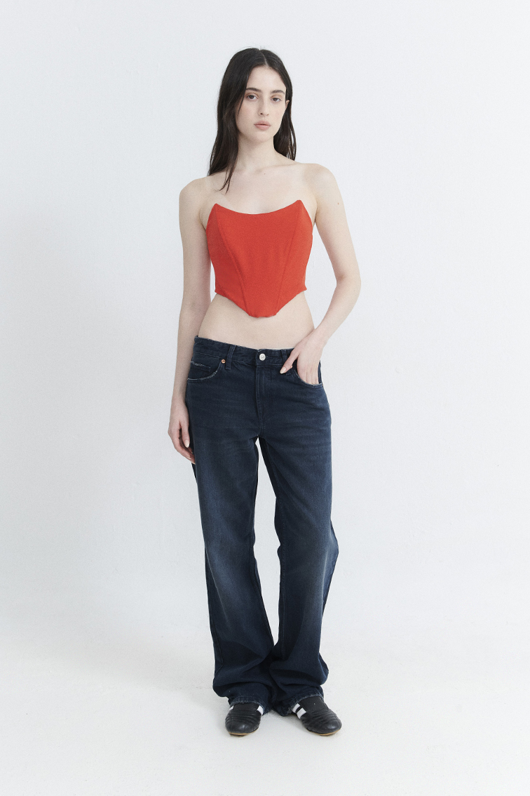 VESTIDO ESCOTE RECTO BRETEL FINO CON RECORTES